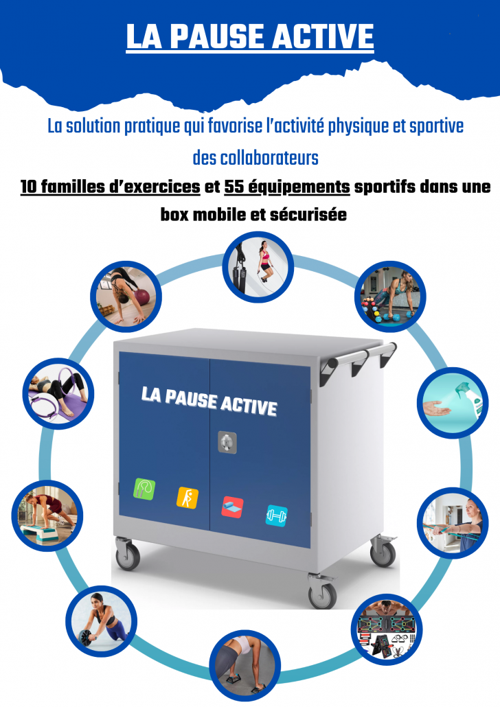 – Et surtout la “Box” mobile renfermant tous les équipements sportifs et utilisable dans tous les services de l’entreprise au gré des jours de la semaine.